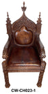 Large Hand Carved Cedar Wood Bone Inlay Chair with Leather Seat