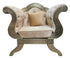 Hand Carved Embossed Brass Chair with Fabric Seat