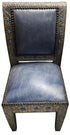 Embossed Metal and Bone Inlay Chair with Blue Leather Seat