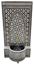 Our Moroccan Black and White Mosaic Tile Water Fountain is a stunning representation of traditional Moroccan craftsmanship, perfect for adding elegance and tranquility to any indoor or outdoor space. Handcrafted by skilled artisans, this fountain features a striking black and white zellige mosaic pattern made from hand-cut tiles arranged in a mesmerizing geometric design. The bold contrast of the colors gives it a sophisticated and timeless appeal, making it an ideal centerpiece for patios, gardens, courtyards, or entryways. Water gently cascades from the brass spout into the tiled basin below, creating a calming and soothing ambiance.